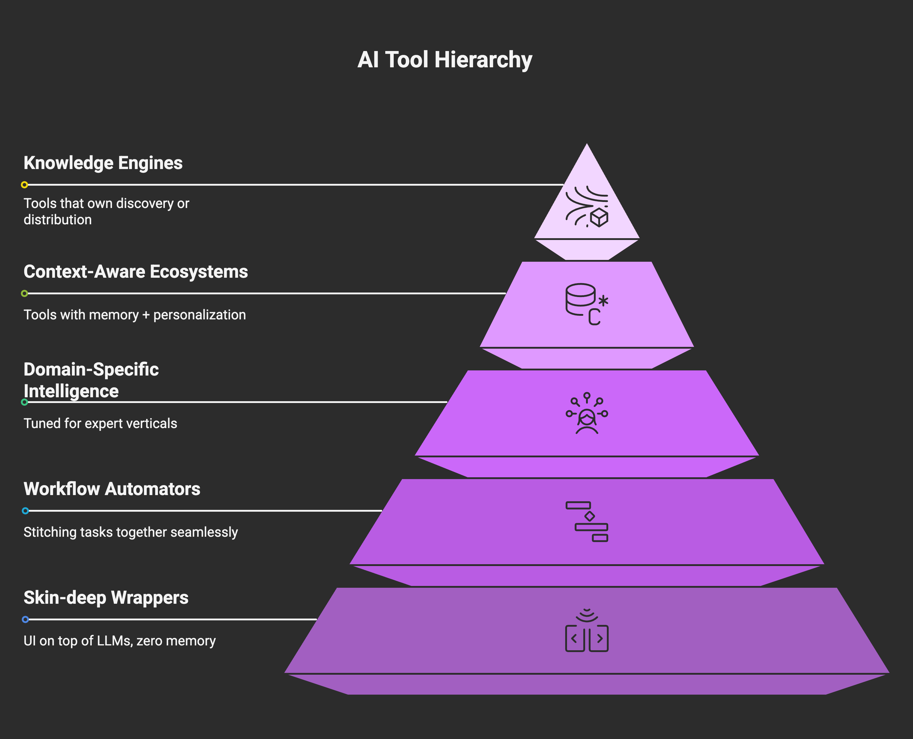 We call this the Information Hierarchy of AI Tools, a five level framework to understand: