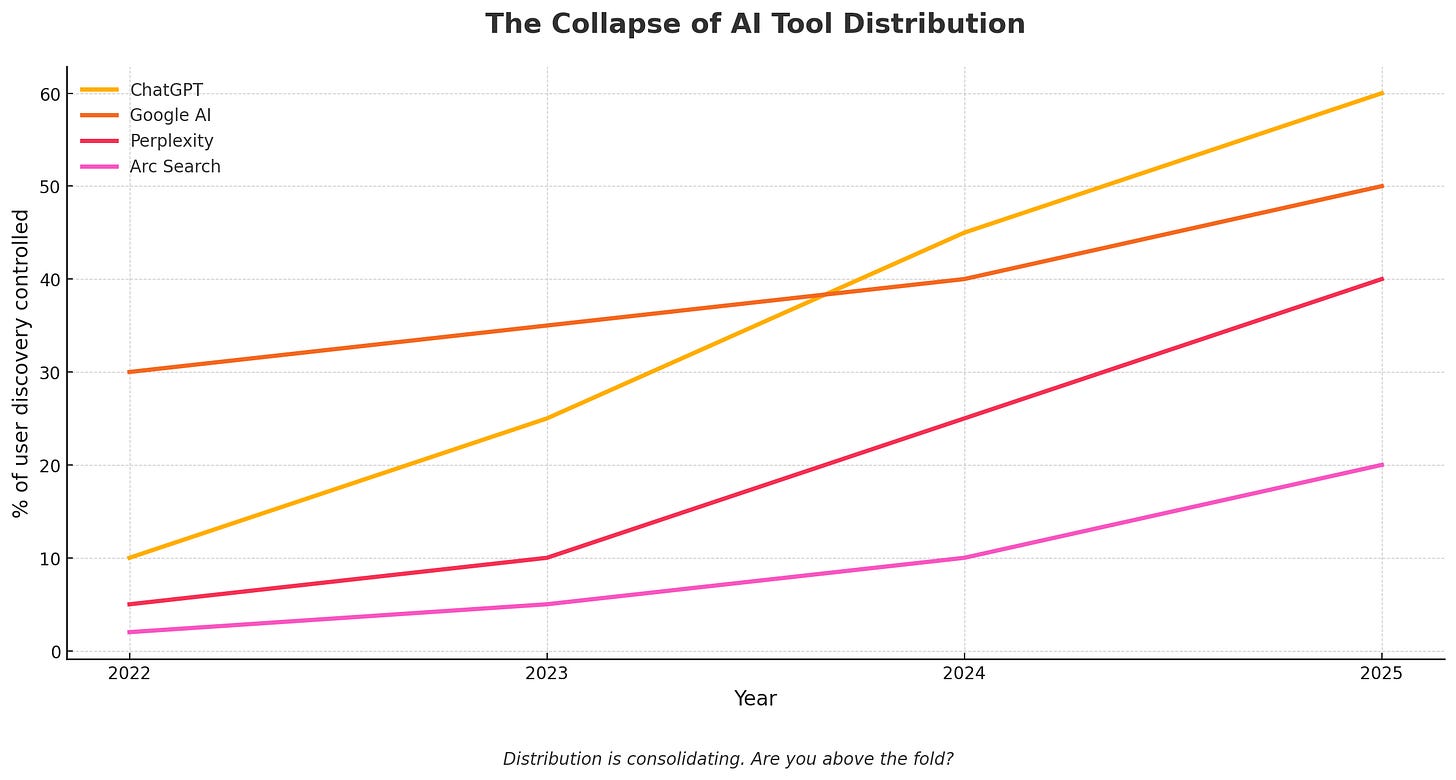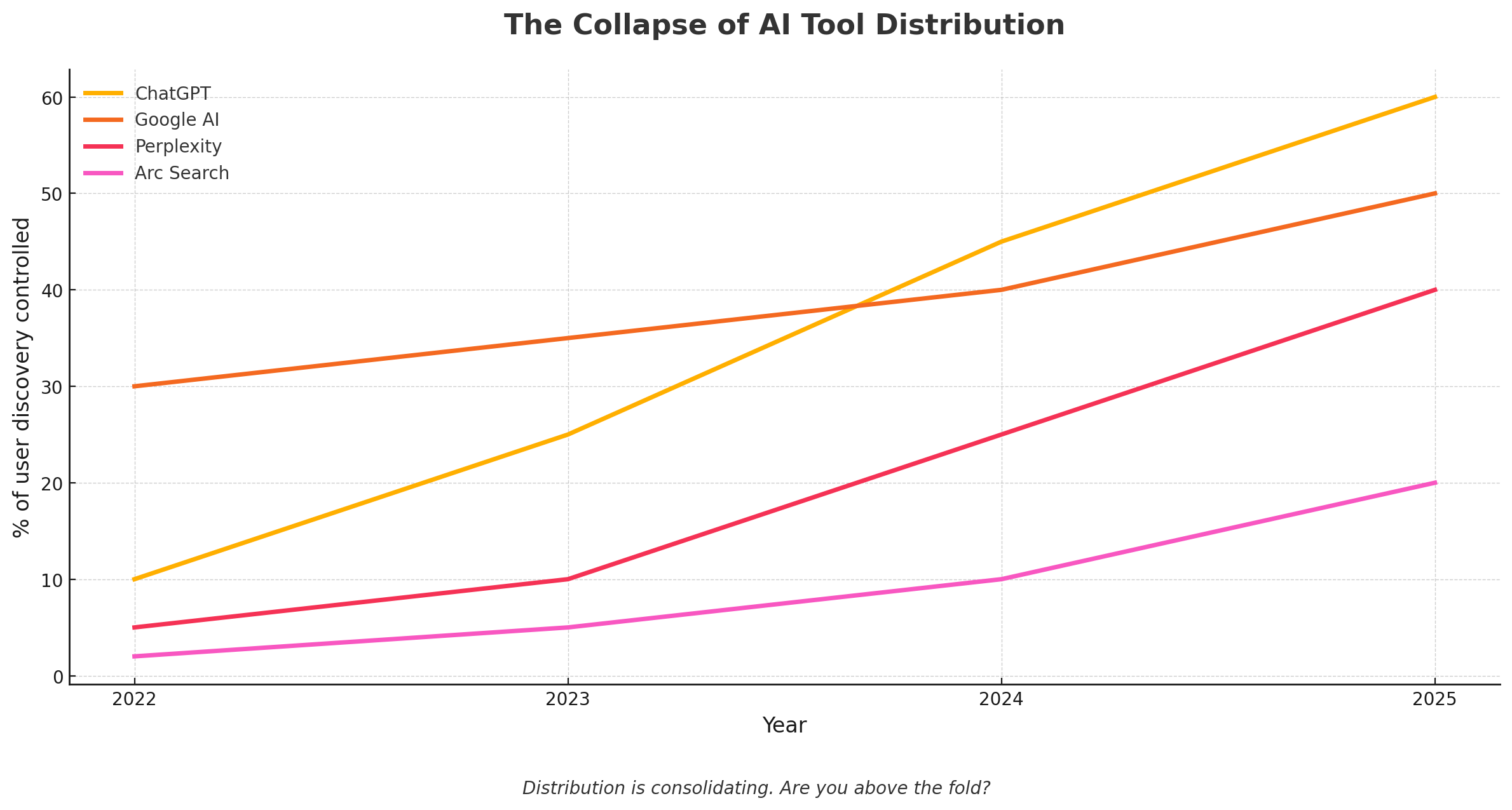 Distribution is centralizing. Google, ChatGPT, Perplexity, Arc — they’re all becoming gatekeepers of discovery.